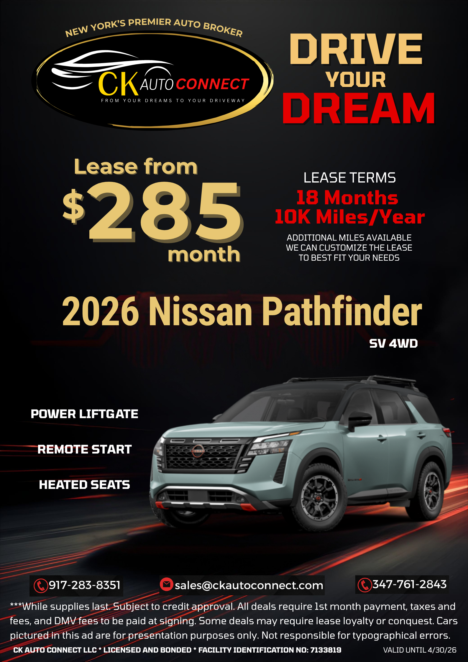 At CK Auto Connect, we’re constantly working to bring you exclusive discounts and limited-time deals on a wide selection of vehicles.